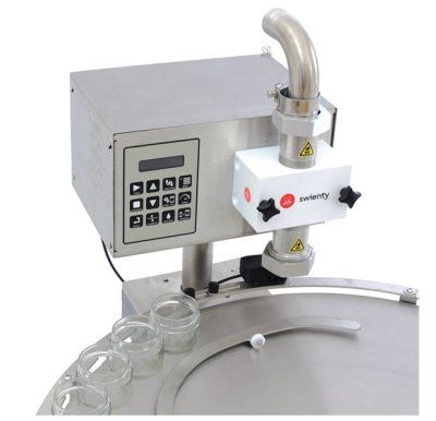 Prázdné sklenice se jednoduše položí na stůl a otočný talíř se zábradlím je poté přenese ke spínači. Jakmile drátový spínač zaregistruje sklo, plnící stroj se spustí a naplní sklo. Poté se stůl otáčí, dokud další sklenice nedorazí před drátový spínač. Zábradlí se velmi snadno nastavuje a přizpůsobuje se různým typům sklenic. Naplněné sklenice se shromažďují uprostřed stolu a mohou být zakryty.